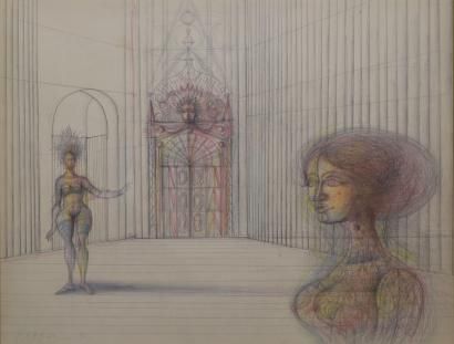 Crayon in colour on paper