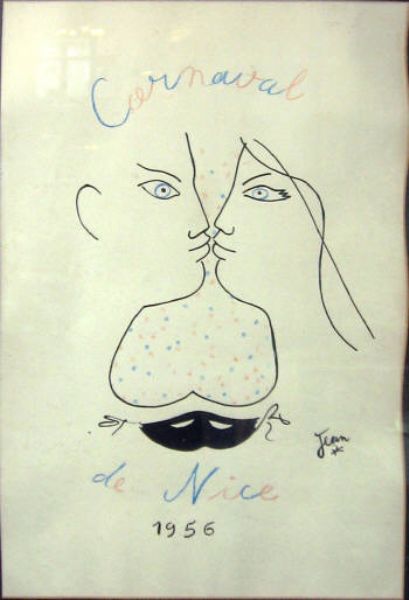 Carnival de Nice - 1956 - Two Figures and a Mask