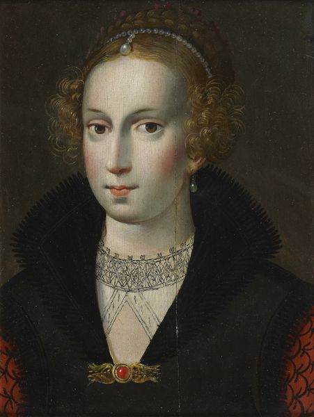 PORTRAIT DE JEUNE FEMME À LA BROCHE ROUGE