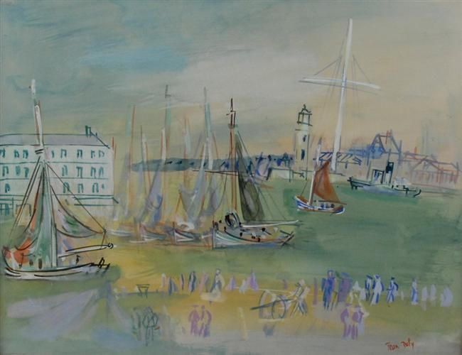 HARBOR VIEW WITH FIGURES, SHIPS AND LIGHTHOUSE