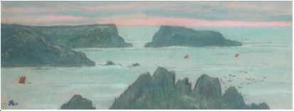 | Belle-Ile-en-Mer, soleil couchant sur les rochers de Goulphar | |
