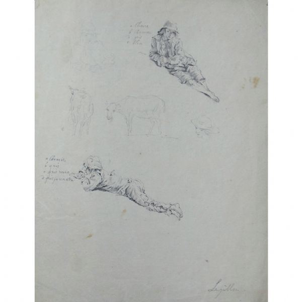| A Sheet of Studies: Two Figures of Reclining Boys with Faint Sketches of Sheep and Two Other Figures | |