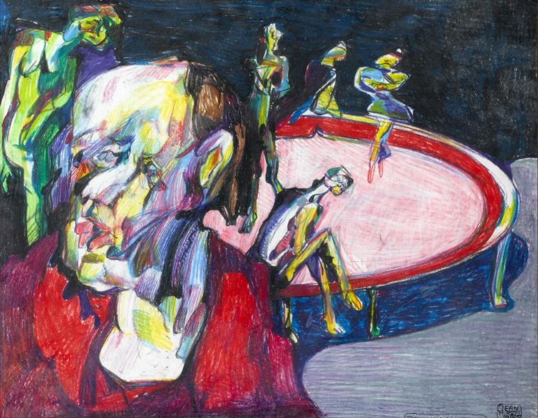 PERSONAGES DANS LE CIRQUE; CONTOURNANT LA PAROI ROUGE