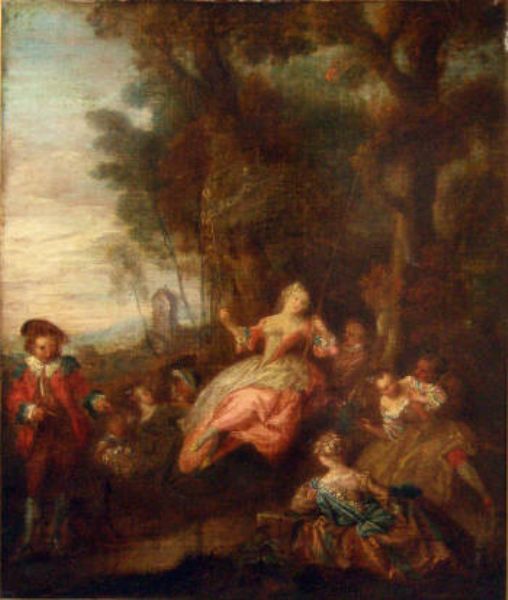 Girl on a swing with other figures