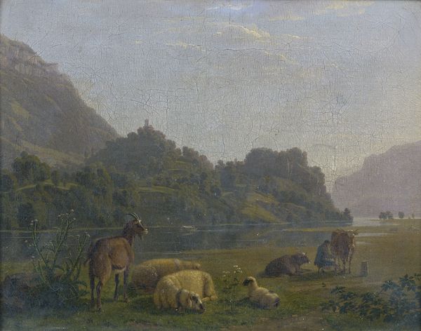 BERGER ET SON TROUPEAU EN BORD DE RIVIÈRE