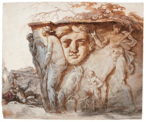 | A STUDY OF TWO FIGURES SITTING AT THE FOOT OF A ROMAN BAS-RELIEF | |