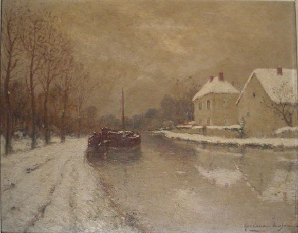 Péniche sur le canal en hiver