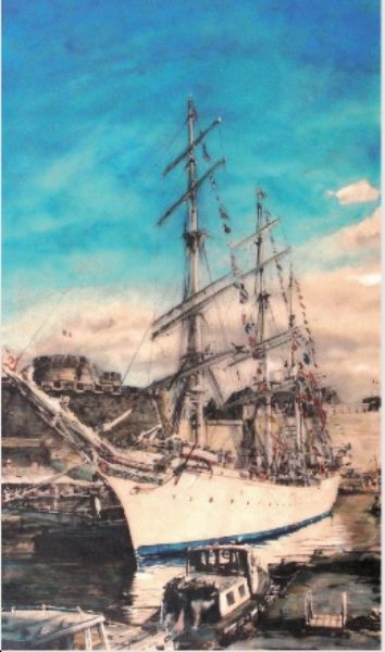 Le trois-mâts norvégien Statsraad Lehmkuhl dans le port de Brest