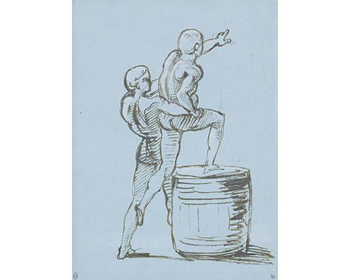 | A study for the principal group of the Raft of the Medusa (a male figure assisting another on to a barrel to make a signal to th | |