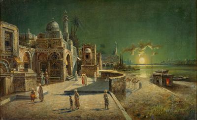 Orientalische Küstenstadt bei Vollmond