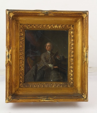 | Oil on panel in deep gilded bound reed and acanthus tongue glazed frame | |