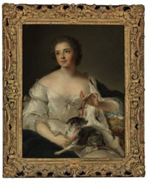 | Portrait of Henriette Nicole (née d'Egmont Pignatelli), Duchesse de Luynes (1719-1782), three-quarter length, with her dog | |
