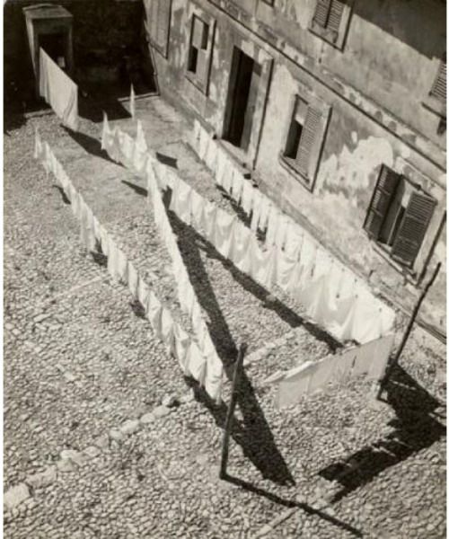Linge suspendu dans la cour