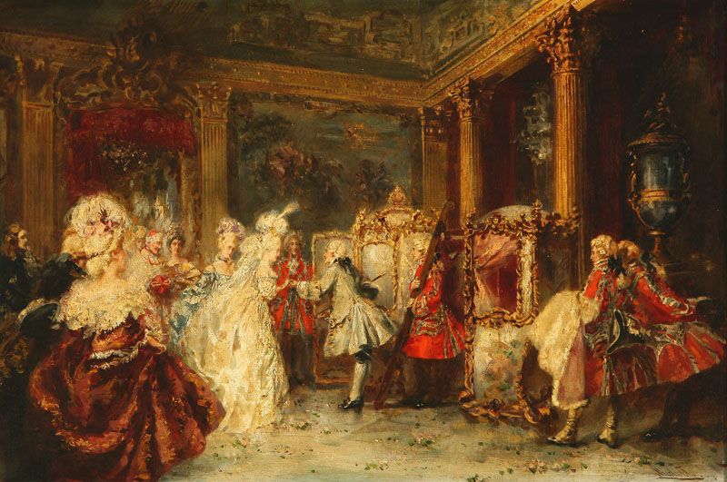 | Figures Entering Sedan Chairs in an Ornate Rococo Interior | |
