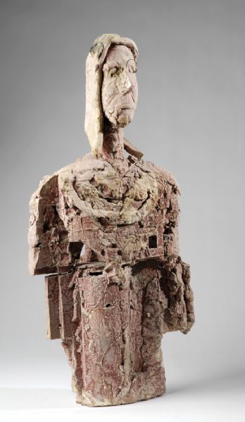 depicting an expressionistic half-fleshed bust