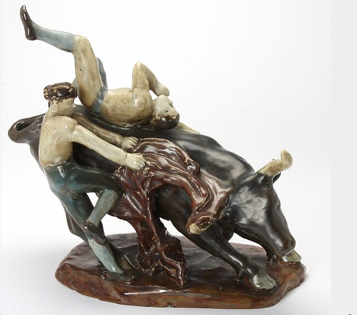 | Figure group of stoneware in the shape of a bullfighting scenery | |