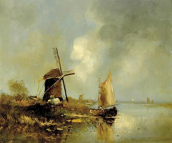 WINDMILL AND BOAT AT THE SHORE