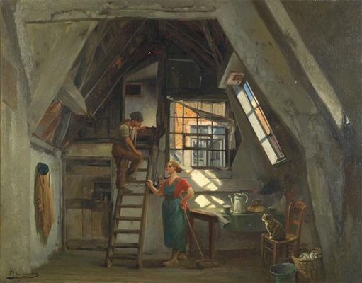 Domestic scene in the attick
