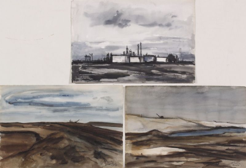 Een serie van drie weergaven van de Europoort en Rozenburg.