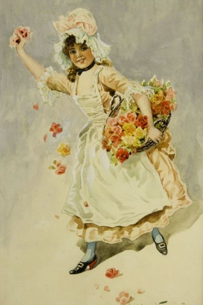 Flicka med blomsterkorg