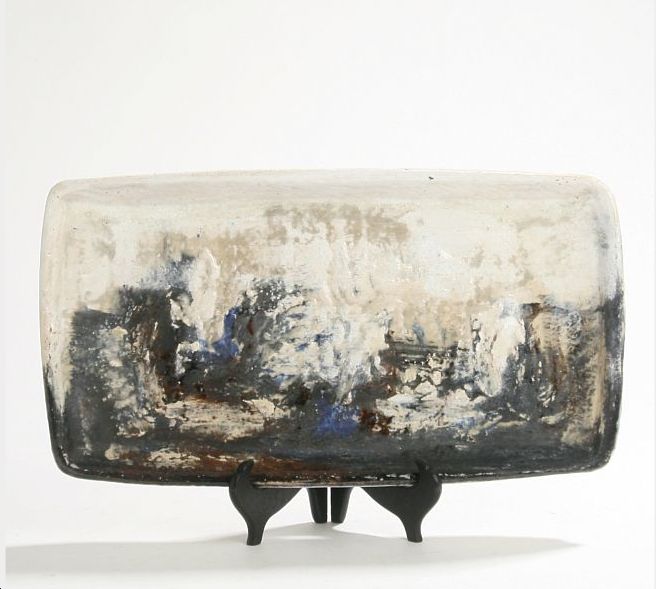 A ceramics dish decorated with polychrome glaze.