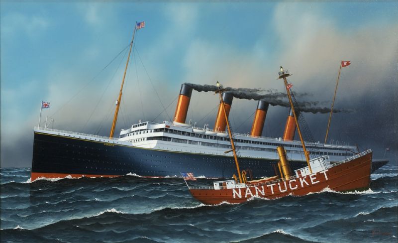Contemporary, Steamship Olympic passing the Nantucket lightship