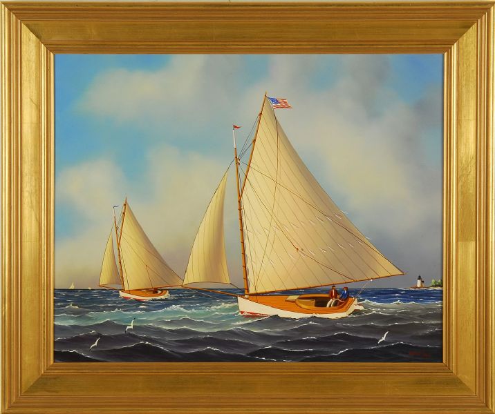 Two catboats sailing off Nantucket.