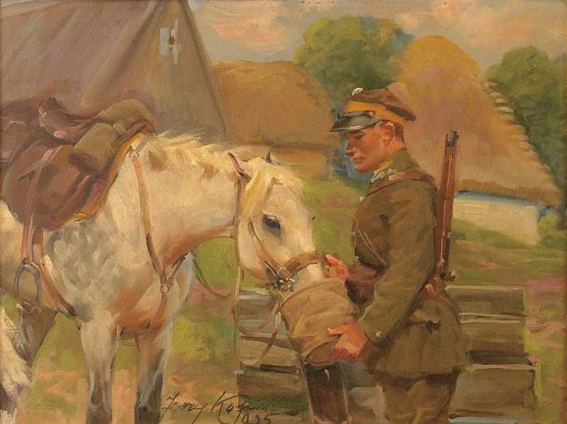 Żołnierz pojący konia