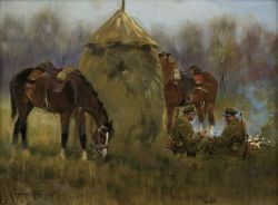 ŻOŁNIERZE KORPUSU OCHRONY POGRANICZA PRZY OGNISKU, 1938