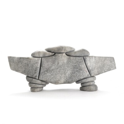 | A polished grey marble sculpture inscribed with text by the philosopher David Spangler | |
