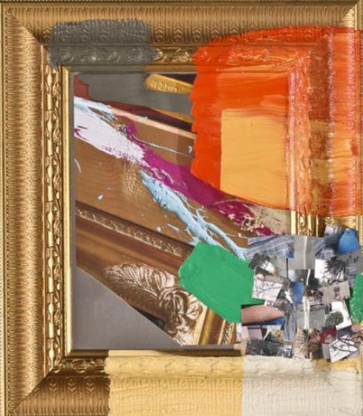 Oil printed paper collage and photograph collage on glass