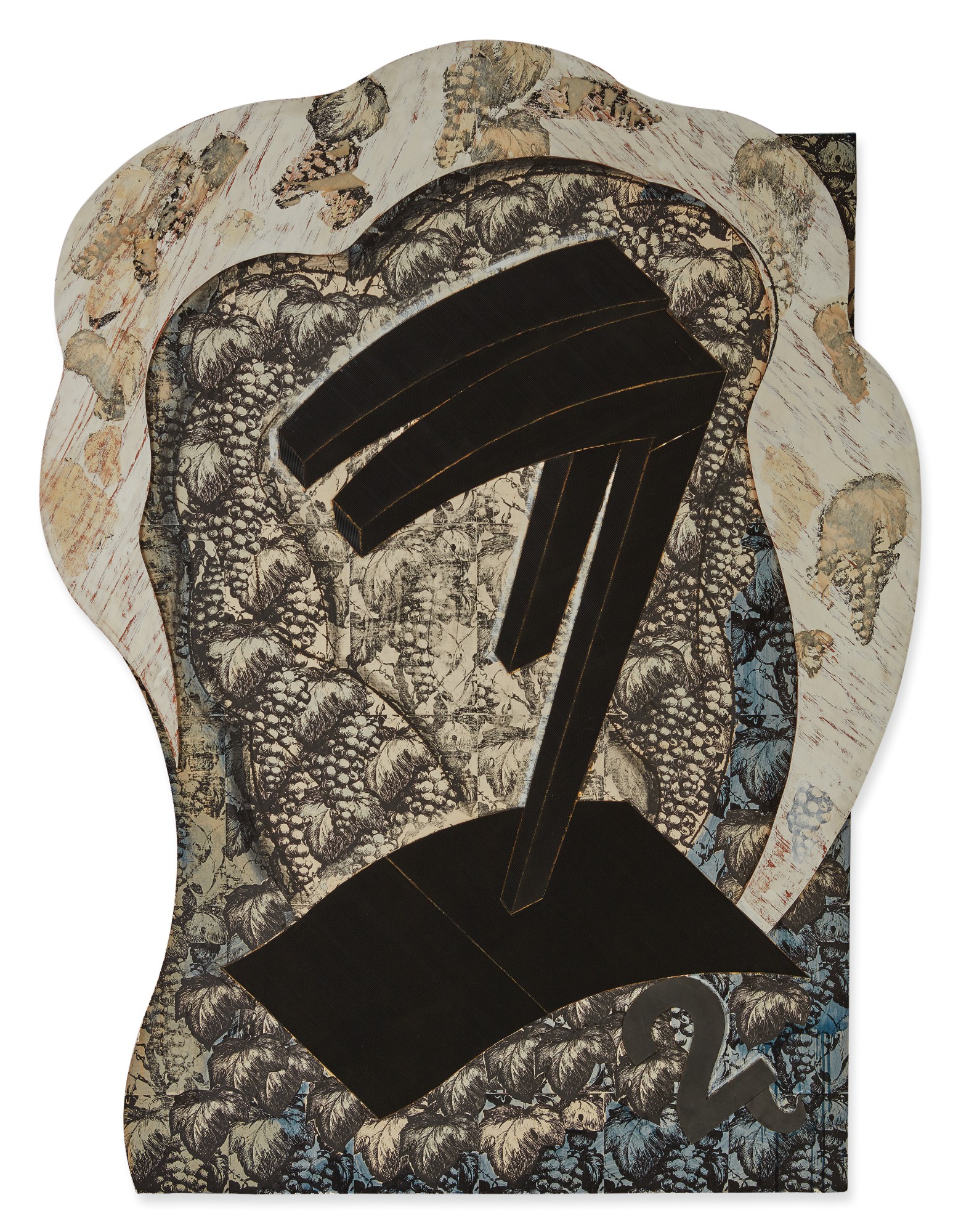 | Watercolor charcoal, acrylic, lithograph, paper, corrugated rubber, wood and foam collage on wood | |