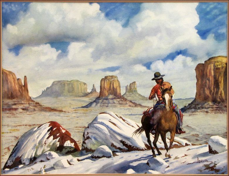 HORSE AND RIDER IN DESERT LANDSCAPE