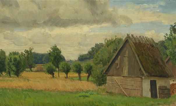 Scenery with a thatched farmhouse