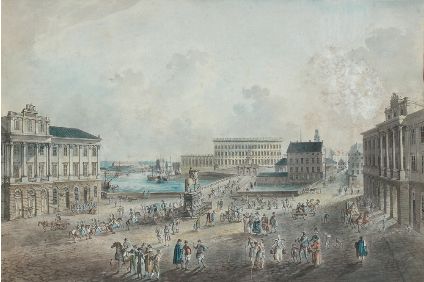 | Vue du palais royal de Stockholm depuis la place Norr Malms Torg | |