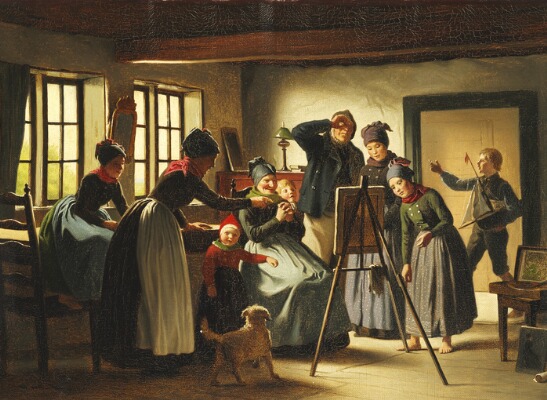 | Interior from Fanø with the locals admiring a painting on the easel, while the artist is away | |
