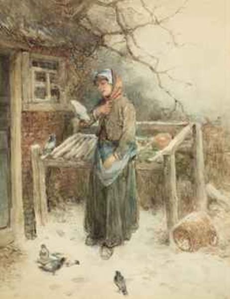A woman feeding the pigeons