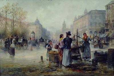 | Fischmarkt in Brüssel, (rückseitig auf altem Etikett so betitelt) | |
