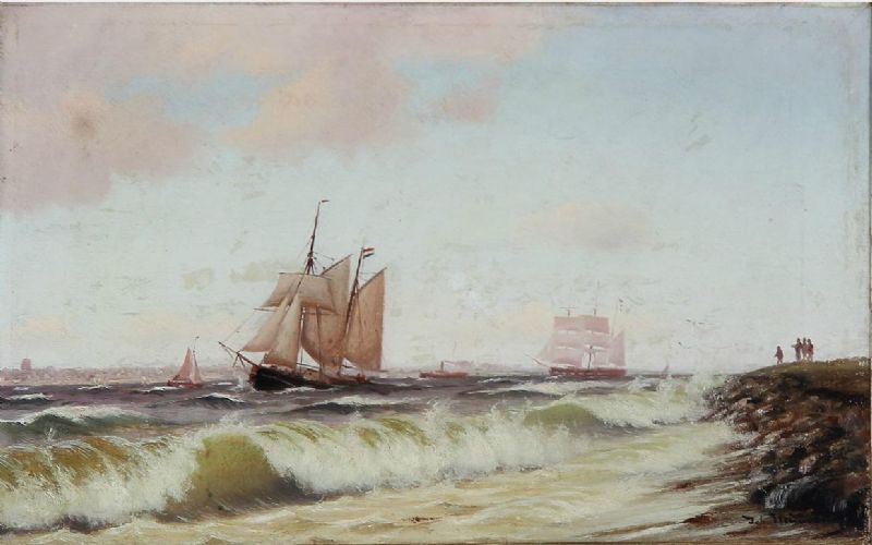 Coastal scene with fishermen at Øresund, Denmark