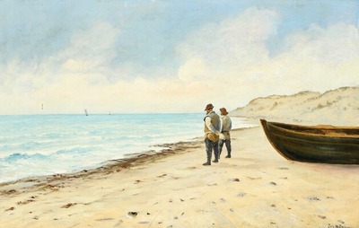 Coastal scenery with two men watching the sea