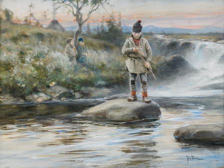 Fiskande samepojke vid fors