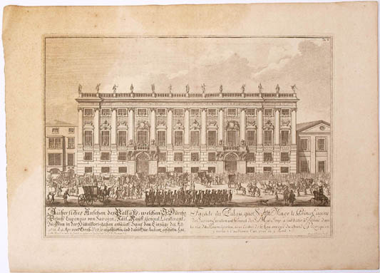 Frontansicht des Palais von Prinz Eugen von Savoyen mit reicher Figurenstaffage