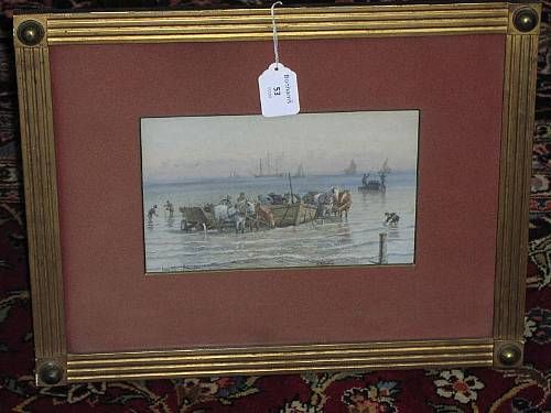 Figures, horses and boats on the beach of Strandmollen, Denmark