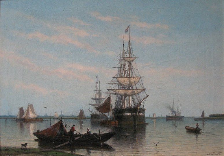 Zeil- en stoomschepen op stil water