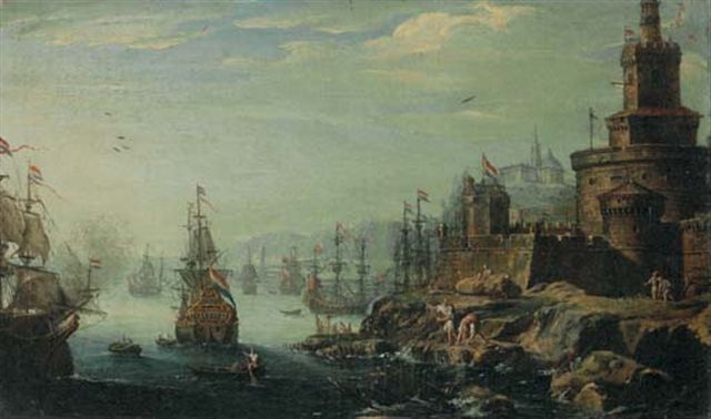 | A capriccio of a port with a fortress and figures in the foreground | |