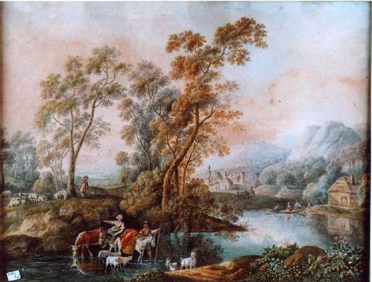 Flußlandschaft mit zahlreichen Personen