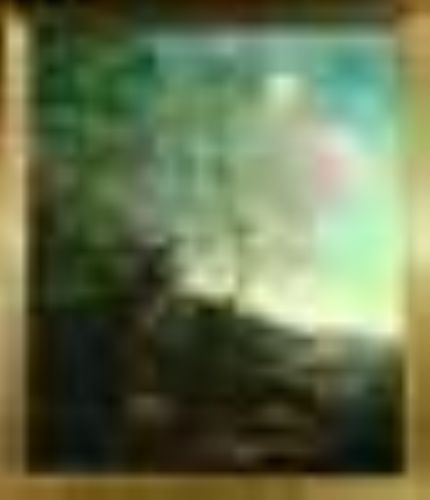 Wooded landscape with travellers. Rocky landscape with cattle next to a spring