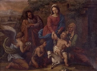 Hl. Familie mit Elisabeth, Johannes und einem Engel