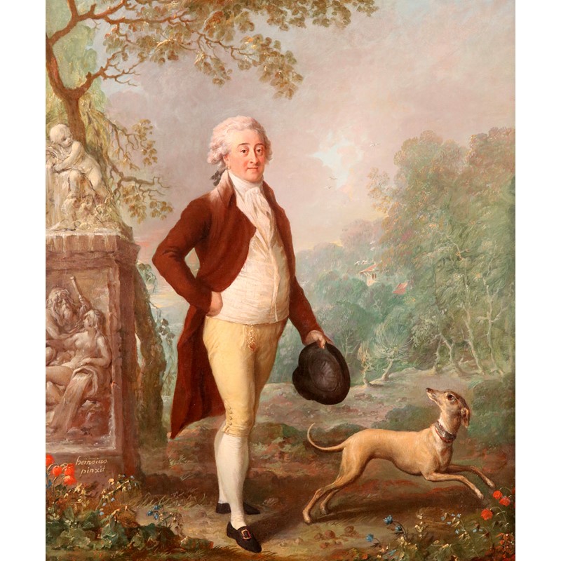 | Portrait of a Gentleman in a park with his dog beside him | |