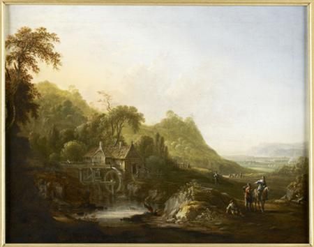 FIGURES AND TRAVELLERS BY A WATERMILL